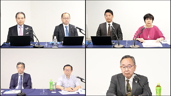 第1部のディスカッション。上段左より,髙倉永治 氏(聖マリアンナ医科大学病院),昆 祐理 氏(聖マリアンナ医科大学),長谷部光泉 氏(東海大学)。下段左より,コメンテーターの權 寧博 氏(日本大学),近藤晴彦 氏(杏林大学医学部付属病院),工藤翔二 氏(結核予防会)。