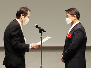 この後,祝電が披露され,さらに2021年度から開始された厚生労働大臣指定告示研修の協力企業への感謝状贈呈へと進んだ。企業を代表して富士フイルムメディカル(株)の川原芳博代表取締役社長が上田会長から感謝状を贈られた。記念式典の最後はJART顧問を務める畦元将吾衆議院議員が閉式の挨拶を行い,式典を終了した。
