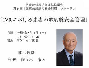 医療放射線防護連絡協議会は,2023年2月11日(土)に第44回「医療放射線の安全利用フォーラム」をオンラインで開催した。同フォーラムは,医療放射線安全の情報を共有し,安全利用向上を推進する目的で毎年開催されている。今回のフォーラムは,同協議会が2004年に発行した「IVRに伴う放射線皮膚障害の防止に関するガイドライン−Q&Aと解説−」が2022年に改訂されたことを記念し,「IVRにおける放射線安全管理」をテーマに行われた。なお,総合司会は同協議会総務理事の菊地 透氏が務めた。