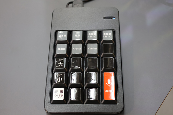 マイクのオン/オフ,文字の拡大・縮小,言語選択などをテンキースイッチで簡単に操作できる。