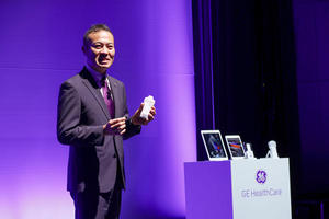 記者発表会は,第1部「ポケットエコー Vscan Air SL」新製品記者発表会と第2部パネルディスカッション「自宅はやがて,診察室になるのか?」の2部構成で行われた。第1部では,GEヘルスケア・ジャパン代表取締役社長兼CEOの若林正基氏,執行役員・超音波本部長の大成学志氏の挨拶に続き,沖縄県の宮古島で離島僻地医療を行っている医療法人鳥伝白川会理事長/ドクターゴン診療所院長の泰川恵吾氏が,僻地の訪問医療の現状について解説した。同社のポケットエコーを開発当初から使用している泰川氏は,装置の小型化が地域医療やその支えとなる在宅医療に与える恩恵を指摘し,今後は看護師などの医療従事者も装置や技術のイノベーションを活用することが求められ,そのためには使いやすい機器の開発や教育の拡充が重要であるとした。