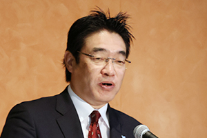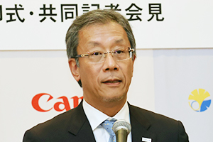 次に,瀧口氏が登壇し,同大学の医療分野における初めての産学協創のパートナーとしてキヤノンが選ばれたことへの感謝の意を表した。また,医療を取り巻く課題の解決には最先端技術によるソリューションの提供が必須であるが,一企業の取り組みでは不十分であると指摘。本産学協創では,同大学が有する医学,法学,社会学などさまざまな専門分野における深くて幅の広い知識とキヤノンが持つ多彩な技術力を融合させ,科学的・医学的エビデンスと市民目線を両立させて課題解決に取り組んでいきたいとの抱負を述べた。