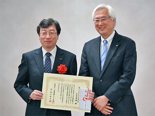 瀧口会長から表彰を受けた山本章雄前会長(写真左)