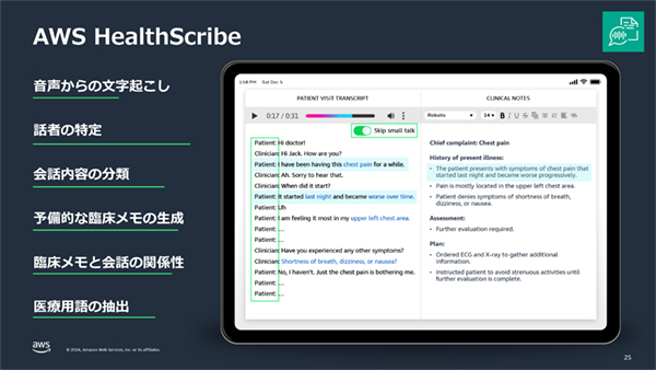 患者と医師の会話から臨床メモを自動生成するAWS HealthScribe