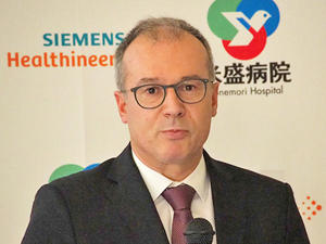 なお,現在,全世界で160を超える施設がSiemens Healthineersとバリューパートナーシップ契約を締結している。その中で,病院経営に関するさまざまな経験や知見を積極的に発信したいという意向を持つ施設をESグローバルリファレンスサイトとして登録しているが(2024年10月現在,世界6か国に8施設),米盛病院は日本初の登録が予定されている。挨拶に立ったドイツ本社Enterprise Services Global HeadのJoao Seabra Ferreira Pinto氏は,パートナーシップ契約の締結やサイトへの登録について感謝の意を述べるとともに,同社のグローバルネットワークや最先端の技術などを用いて,病院経営やワークフローおよび臨床的なアウトカムの向上に取り組んでいきたいと語った。
