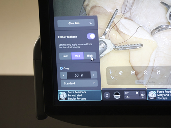 力覚情報を術者に伝える「Force Feedback」は3段階で調整可能