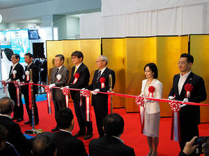 このほか,厚生労働省大臣官房審議官の迫井正深氏,公益社団法人日本医師会会長の横倉義武氏,公益社団法人日本看護協会常任理事の荒木暁子氏が来賓として挨拶した。また,出展者代表としてオージー技研(株)代表取締役社長の奥田 宏氏が挨拶,ホスピタルショウ委員会委員長の大道 久氏が今回のホスピタルショウの概要を説明した。最後に恒例のテープカットが行われ46回目の国際モダンホスピタルショウ2019がスタートした。