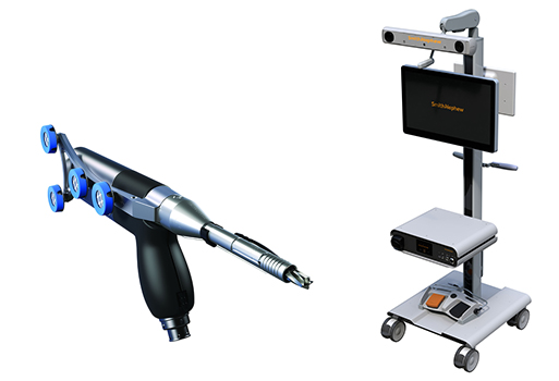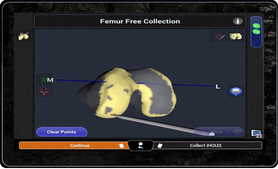 本システムは術前画像を用いない,イメージフリー方式を採用しています。手術中に患者様の膝関節形状を読み込ませ,リアルタイムに3Dモデル化を行います。システムを使用するための特別なCT撮像,X線撮像を必要としないため,システム導入による放射線科への業務負担が発生しません。