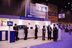 | 日本貿易振興機構(JETRO)は,今回初めて出展。レイクサイドセンターの会場内にJAPAN Pavilionを設け,日本企業とその製品をPRした。このブースは,日本画像医療システム工業会(JIRA)の要請によるもので,JIRAはこのブース内にコーナーを設置。JIRAのコーナーで製品展示を行う企業もあったほか,単独でコーナーを設けた企業もあった。AZE,クライムメディカルシステムズ,ViewSend,ホンダ・ハドロニクス,オリオン電機,エルクコーポレーション,ジョブ,京都科学,医建エンジニアリングなどの企業が参加。日本企業共通の特長であり,強味である技術力の高さと質の高さをPRしていた。このほか,JIRAのコーナーでは,来春パシフィコ横浜で開かれる2010国際医用画像総合展の出展誘致も行われた。 |