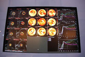 同社はRSNA2008において,MRIによる心機能解析ソフトウエアを発表したが,そこに新たに心筋パーフュージョン解析,遅延造影MRIのソフトウエアが追加され,さらに同社独自の新しいユーザーインターフェイスが採用された。心臓MRI検査にはさまざまな解析処理が含まれるが,このソフトウエアの特長は,得られたデータをまずは一度ですべて読み込むことにある。心臓MRI検査を行う場合は通常,心機能の評価は心機能専用,遅延造影の評価は遅延造影専用のソフトウエアで,それぞれ必要なデータのみを読み込んで解析しなければならず,かなりの手間がかかっていたが,それを1つのソフトウエアですべて行えるようになった。このため,比較読影・比較観察を行った後は,同じソフトウエア上で解析したい内容を順次選択していくだけとなり,読影効率の大幅な改善に貢献する。