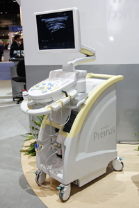 これらの製品は,領域別に3つのエリアに分けて展開され,整形領域を中心に表在領域にフォーカスした「MSK & Superficial Imaging」では,「Preirus」「Avius」「F75」の3機種を展示。技術の進歩により13〜16MHzといった高い周波数が使われるようになったことで,X線でとらえにくい軟骨部位や,表在の細い血管までも超音波で観察可能となっており,エラストグラフィやvascularity計測といった整形領域で有用な機能が紹介された。