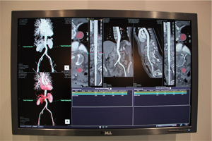腹部大動脈瘤,胸部大動脈瘤の治療に用いられるステント留置術は,破裂する前に適正なサイズのステントを血管内に留置することで,患者に負担をかけず未然に防ぐことができる治療法で,日本でも増加傾向にある。血管計測ソフトウエアは,複数の計測ポイントで長さ,経,角度を計測することが可能で,計測結果はレポート出力できる。
