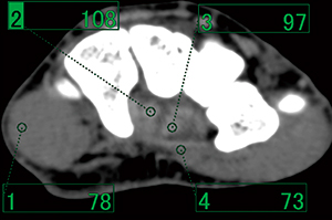 図3 135kVにおける屈筋腱と周囲組織のCT値 |