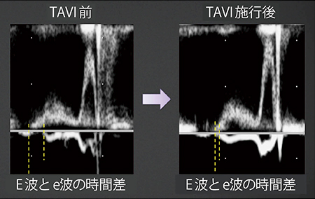 図2 TAVI前後におけるE波とe’波の時間差(TE-e’)