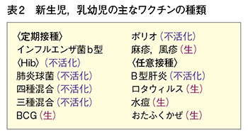 表2 新生児,乳幼児に接種する主なワクチンの種類