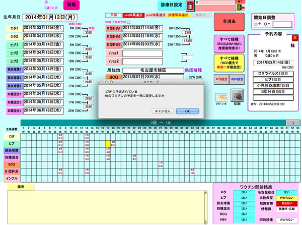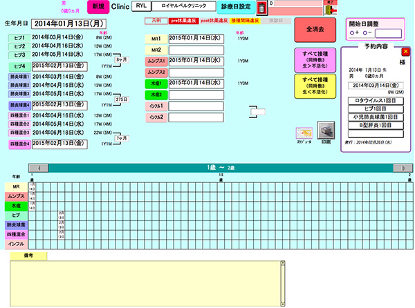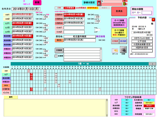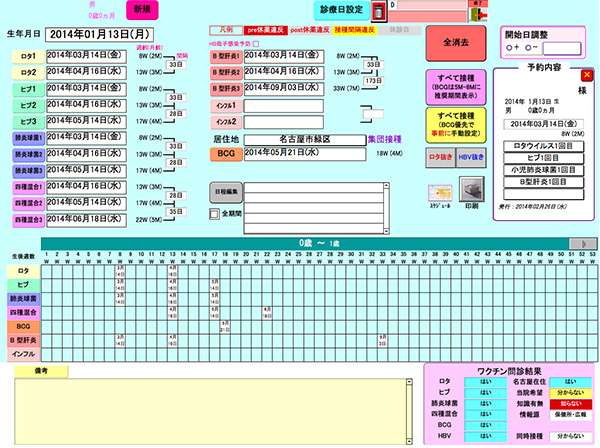 吉田副理事長が,FileMakerによる新たなソリューションとして開発し,フォレストベルクリニックで運用を開始したのが,乳幼児のワクチン接種スケジュール管理システム(以下,ワクチンスケジューラ)である。