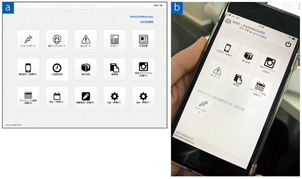 BISH systemでは,エコーや脳ドックなどのレポート,インシデント・アクシデント(IA)レポート,サマリー,手術記事などの作成や参照が可能だ。電子カルテから患者基本情報など必要な情報を取り込み,FileMakerでの書類の作成時には患者ごとに異なる情報を入力するだけですむ。さらに,スタッフが持つiPhoneでは,FileMaker GoでBISH systemのさまざまなアプリが利用できる。現在は,患者ピクトグラム,出退勤管理,備品管理,議事録などのアプリが利用可能だ。