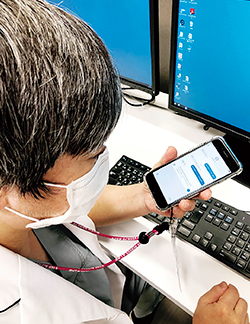 iPhoneのメッセージで救急患者の情報を一斉配信。Siriで音声入力する髙橋理事長。