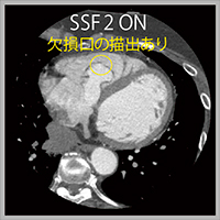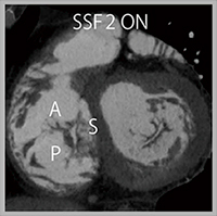 症例4は,三尖弁囊の発達した心室中隔欠損症である。超音波や通常のCTでは欠損口の描出が不明瞭であった。SnapShot Freeze 2を適用した画像では,欠損口の存在やサイズも明瞭に確認可能であった(図4)。