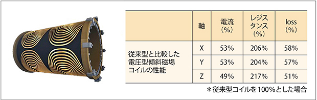 従来の傾斜磁場コイルは電流型であったため,高い傾斜磁場を発生させるためには,式(1)で表されるとおり,電流量を増やす必要があり,その結果,傾斜磁場コイルの発熱量も増加する。
