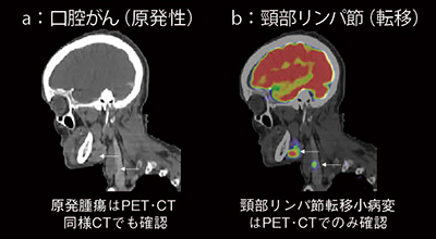 図1 PET・CTによる口腔がん原発巣と頸部リンパ節転移の検出