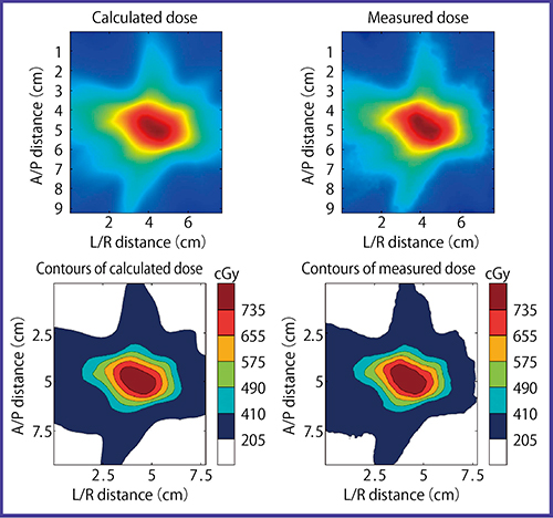 面線量測定は,フィルム,検出器による測定など方法はさまざまである。当院の二次元検出器では,検出器間隔が1cmと大きいため照射野内の測定点が少ない。そのため,小照射野の評価が困難であるため,線量測定用フィルムは分解能が高い「GAFCHROMIC EBT- XD(EBT-XD)」(ベリタス社製) を使用して検証を行うこととした。EBT-XDは高線量域まで使用可能であり,SBRTに推奨されたフィルムである。図4に,事前検証として行ったコールドランのガンマ解析の結果を示すが,(線量差/DTA)=(3%/3mm) を判定基準として97%以上であり,良好な結果を示した。