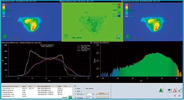 PDによる線量分布検証は,EPIDに直接照射を行うため,ファントムなどを設置する手間が不要であり,ほかの手法に比べて短い時間で検証作業を行うことが可能である。VMAT検証の測定に要する時間は5分程度で,検証結果の解析も数分で終了する。また,解析結果はバリアン社製の放射線治療データ管理システム「ARIA」内で自動的に患者に紐づけられて一元管理されるため,容易に参照可能である。