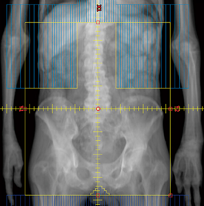 腰椎から骨盤に及ぶ多発性骨転移の痛みには,6〜8Gyの半身照射を行っている(図1)。悪心や嘔吐は放射線治療1時間前のグラニセトロン内服でほとんど予防できる。痛みが再燃した場合や効果が不十分な場合は,再度半身照射を行うことも可能である。