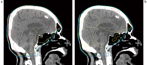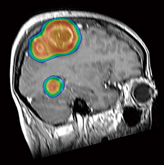 複数の脳転移巣に1つ1つ定位放射線治療を行うと,病巣の個数が増えるにつれ治療時間が長くなるが,TrueBeam導入後は強度変調放射線治療(IMRT)で複数の脳転移巣を一括して短時間で治療できるようになり,さらに近接する脳転移巣があっても過線量の心配がなくなった(図3)。