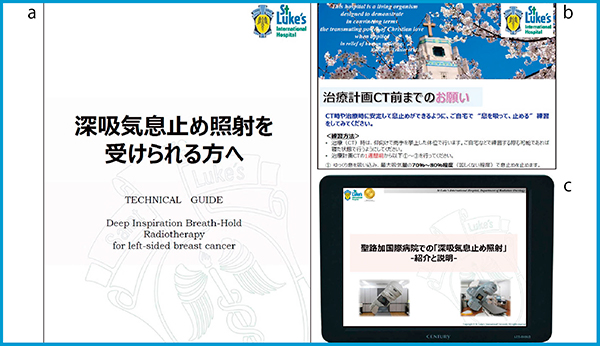 vDIBHは,患者の自発的な息止めによって呼吸停止位置が決定する。そのスムーズな実施のためには,患者の治療への協力および個々に応じた治療内容の理解が重要である。当院では,治療計画CT撮影日の数週間前から,図6に示すような教材を用いて,主に看護師から放射線治療オリエンテーションを行っている。