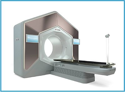 2021年3月18日に,バリアンの新たな適応放射線治療(Adaptive Radiotherapy)ソリューションである「ETHOS Therapy」(図1)が,厚生労働省より製造販売承認を取得した。ETHOS Therapyは,包括的かつ革新的な適応放射線治療を提供するソリューションである。その特徴は,Initial Planningの段階からOn-couch AdaptationやTreatment Monitoringに至るまで,患者中心の個別化医療を実現していることにある。ETHOS Therapyを可能とするAdaptive Intelligenceは,がん治療に変革をもたらす。マルチモダリティ画像と人工知能(AI)を高度に統合し,医療従事者が病変部位をより詳細に見て,より深く知り,より正確に治療できるようにする。さらに,ETHOS Therapyはきわめて直感的に使用できるため,導入する施設の制限はほとんどない。イメージングには従来と同様のkVベースのプラットフォームを採用することで,追加のモダリティや特殊な技術を学ぶのに必要な,新たな集中トレーニングを実施する必要もない。患者一人ひとりを本当の意味で治療の中心に据えることができる,革新的なソリューションである。