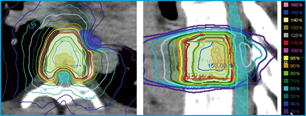 急峻な線量分布を作成し治療を行う必要がある。