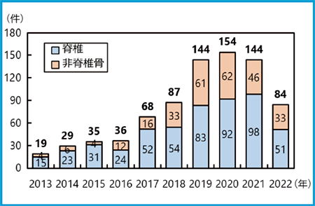 図2 東京都立駒込病院の脊椎SBRTの治療件数