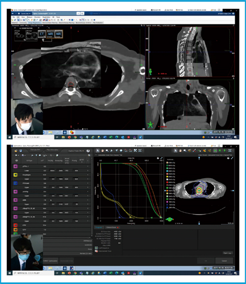 図3 「Varian SBRT PRACTICE for Spine Metastasis」でのCT-MRフュージョンと線量分布最適化の画面