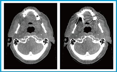 次に,HyperSightで可能になったメタルアーチファクトリダクション(MAR)処理の有無で画像を比較してみた。明らかに,MAR処理をした画像はメタルアーチファクトが改善されていた。