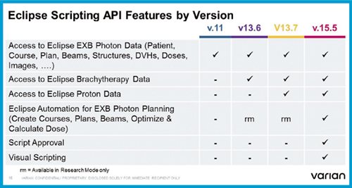図5 EclipseのバージョンによるESAPI機能の違い(Varian APIs handbook p.14 Chapter 2. ESAPI basicsより引用転載)