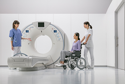 780mm開口径ガントリ,位置決め画像に従って操作室側から寝台の上下/左右の調整が可能なSUREPosition。最大70画像/秒まで高速化を実現した画像再構成などにより,検査全体のスループットが向上します。