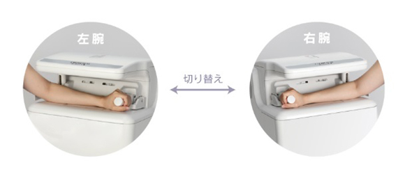グリップに自然な角度を持たせ,被検者の負担を軽減。測定は右腕でも左腕でも可能です。両側に配置されたグリップを倒すだけで自動的に腕の左右を認識し,よりスムーズな測定を実現します。