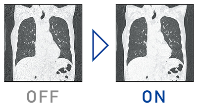 逐次近似処理をルーチン検査で使いやすくする為に,画像処理速度を50%向上させ,ノイズ低減の強度も7段階から選択できます。適切な被ばく線量と,画像ノイズなどの低減による高画質な画像を提供します。