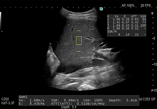 せん断弾性波の伝搬速度(Vs)を計測することで硬さを評価できます。「ATT(iATT)」は超音波の減衰量を非侵襲的に計測し,肝臓の脂肪量を定性的に評価する為の情報を提供します。