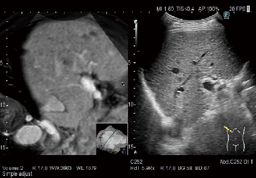 CT・MRI・超音波診断装置のボリュームデータから作成したMPR 画像を超音波画像とリアルタイムで同期させる機能です。治療をサポートする機能であるRVSは治療の位置決めを補助したり,超音波検査だけでは見つけづらい小さな病変の発見をサポートします。
