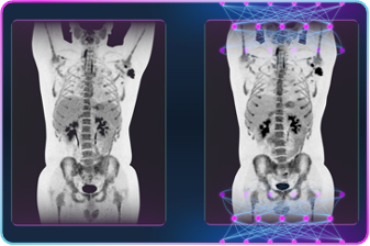 Omni Legendは,全身腫瘍検索,アミロイドPET,Theranostics(セラノスティックス)などPET/CT検査におけるこれらニーズに応えるべく設計された全く新しいプラットフォームを持つPET/CT装置です。カッティングデザインを一新したシンチレーターおよび半導体SiPMで構成された最先端検出器により,超高感度・高分解能を実現し,高画質の提供は勿論,短時間および微量のアイソトープでの画像化によって,検査スループットの向上と被検者の被ばく低減を可能とします。