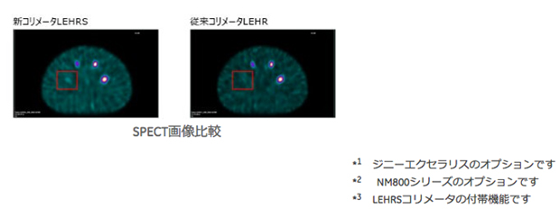 新コリメータ「LEHRS(Low Energy High Resolution Sensitivity)」*2を開発。従来の分解能の良さはそのままに,感度は大幅にアップします。また,新機能「SwiftScan」*3もコリメータとともに搭載可能で,これにより検出器が移動する間のデータ収集も可能となることから,Whole Body収集,SPECT収集ともに最大で25%*4の収集時間短縮が実現します。