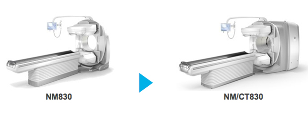 NM 830は,画質の向上と短時間収集を実現したSPECT装置です。従来同様,高速多軸動作機構やワークフローの良さはそのままに,検出器の感度を向上させる新しいコリメータとコントラストを向上させるソフトウェアを組み合わせて搭載することで,さらなるスキャン時間の短縮と病変描出能の改善を実現しました。また,最新の核医学装置専用ワークステーション Xeleris 4DRでは様々な検査目的を持つ核医学診断に適した定量アプリケーションが充実しています。