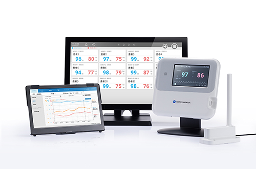 従来の心電図測定をせず,SpO2と脈拍測定という機能を限定することで簡単なモニタリングを低コストで実現しました。ベッドサイドモニタはスタンドアロンで使用することもできるので簡単な外科処置や内視鏡施術時にも最適です。また従来の医用テレメータや無線Wifiを使用せず,Sub-GHz帯無線通信を採用しているためアンテナ工事の必要がありません。そのためモニタリングシステムの移設も簡単にできるので,発熱外来などの感染対策にも気軽にご使用いただけます。