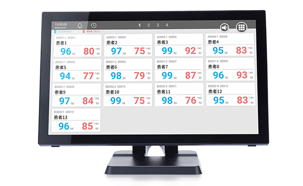 Sub-GHzアンテナを採用し病棟エリア程度の範囲で最大48患者のモニタリングが可能です。管理用ディスプレイで温度板を自動作成し,外付けのHDDでバイタルデータの保存ができます。