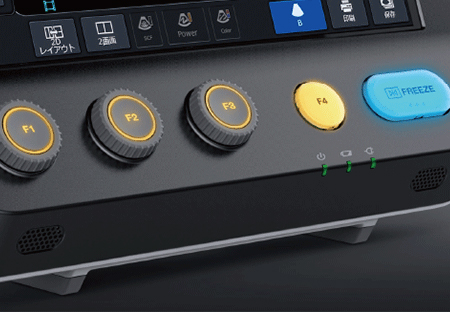 カメラで撮影した映像を診断中の超音波画像に重ねて表示。表示した画像は静止画と動画(音声情報も保持可能)で保存できます。後から検査状態を確認する際や,情報共有に便利です。