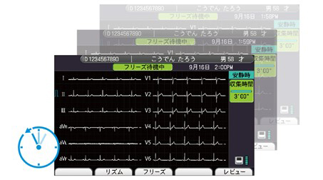 より大きくなった画面やプレビュー機能の追加により心電図検査の検査時間を軽減,エラーメッセージや操作ガイド表示により操作者が安心して検査ができる環境の提供,など心電図検査を通して医療安全の向上や業務効率軽減へ貢献します。
