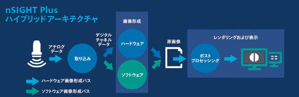 nSIGHT Plusでは,進歩したGPUとソフトウェアを併用し,画像処理の早い段階からピクセルレベルでのアダプティブアルゴリズムによる画質の向上を実現します。2D画像だけでなく,3D画像でもクラッタノイズを減少させるなどの処理を行います。