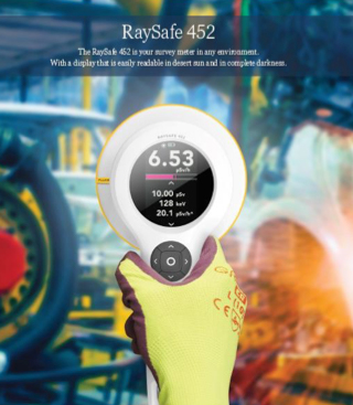 『RaySafe 452』は,エネルギー補償されたパンケーキ型GM管と半導体検出器の2つの測定方式を組み合わせたまったく新しいサーベイメータです。2つの測定方式を使うことにより,フラットかつ広いエネルギーレスポンスを持ち,1台で様々な測定対象を測定することが可能になっています。